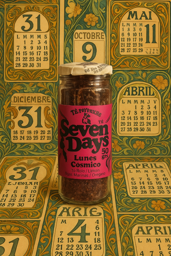 Blend correspondiente al combo Seven Days. Sus ingredientes son té rojo, algas marinas, cáscara de limón y orégano. Rinde 25 tazas aprox.