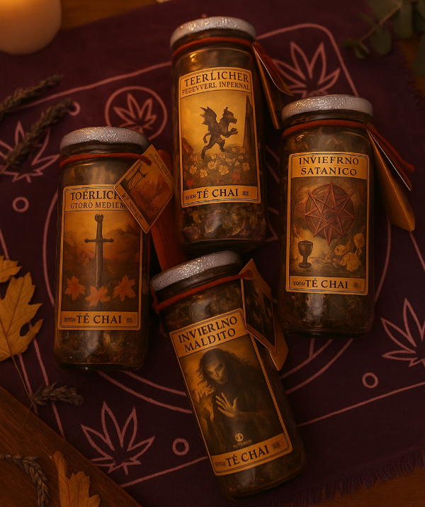 Combo chai, 4 té chai diferentes. Inspirados en el tarot y las 4 estaciones con fantasía medieval. Incluye cada uno mini carta de tarot con su descripción. Podríamos tomar estos blends en una cabaña abandonada en medio de un bosque, en medio de un campo de maíz en invierno o en otoño.