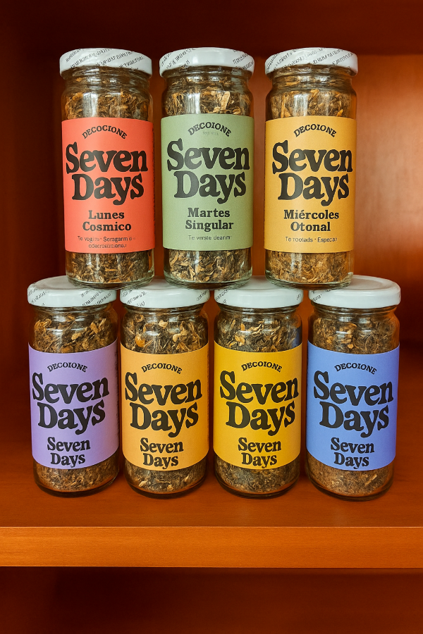 El combo trae 7 blends diferentes correspondientes a los 7 días de la semana. Cada frasco rinde 25 tazas aprox.